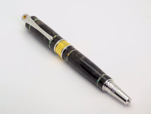 Broadwell Art Deco Fountain Pen in Chrome, Gold, Maple Burl and Opal Inlay