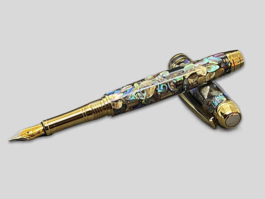 Mistral Fountain Pen in Paua Abalone and Gold with Rhodium Accents