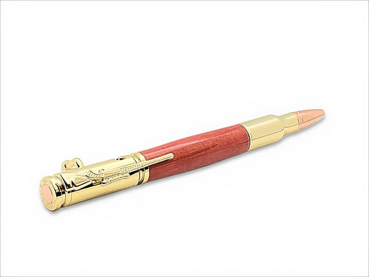 30 Cal Bolt Action Pen in Gold and Pink Ivory Wood