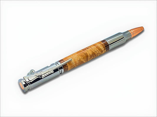 30 Cal Bolt Action Pen in Gun Metal, Maple Burl and Walnut